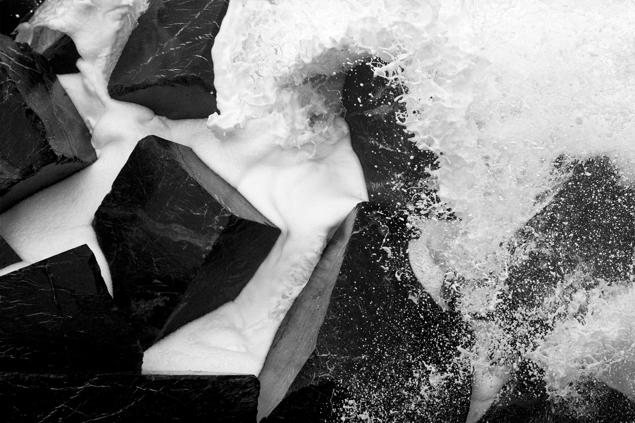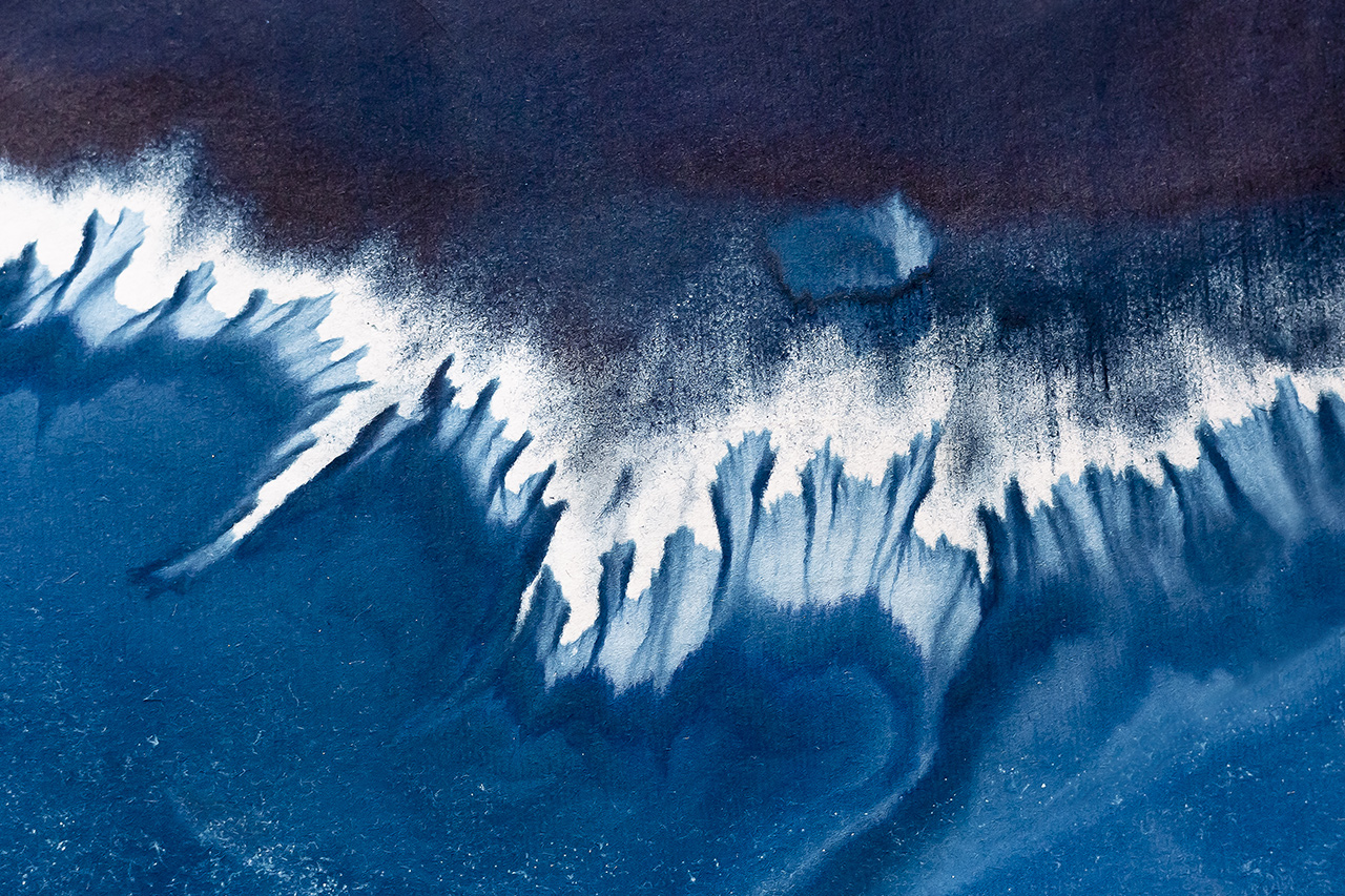Shapes converge through the interplay of the emulsion and the undulation of the sea.